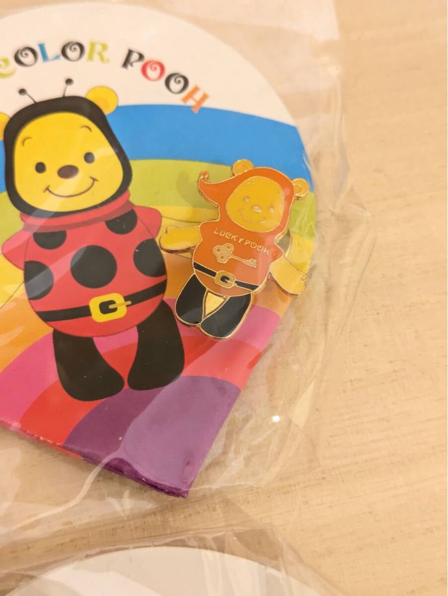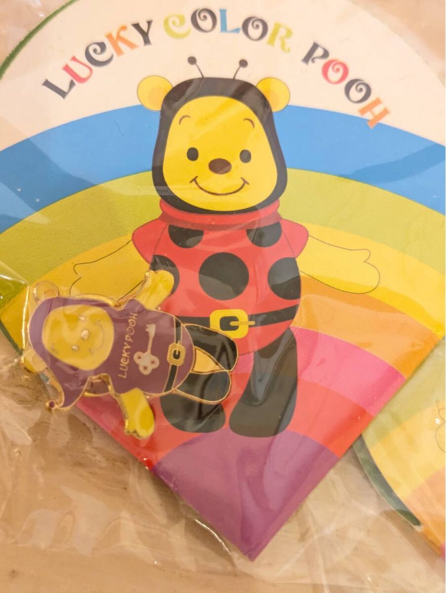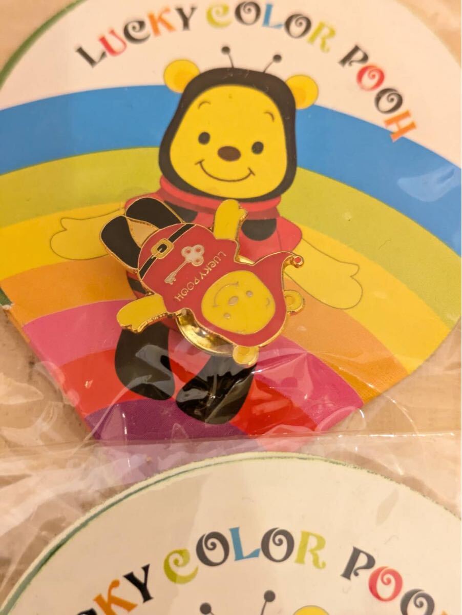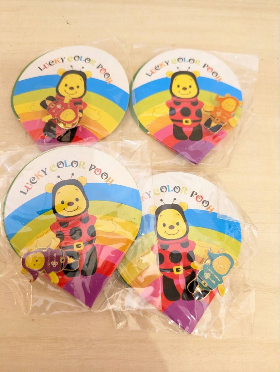 A685 【LUCKY COLOR POOH プーさん ピンバッジ 4個セット テントウムシ】