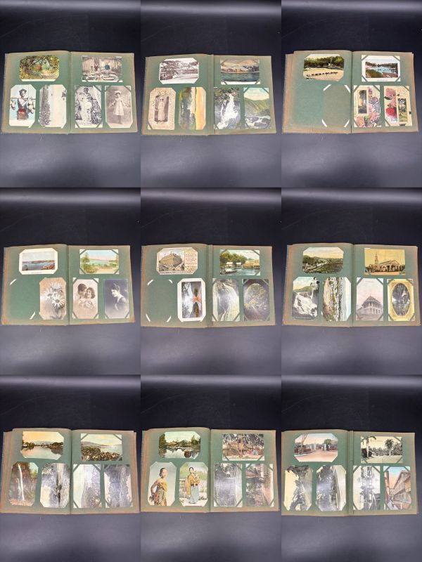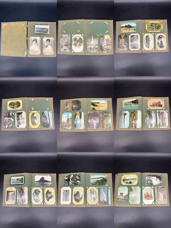 ご覧頂きありがとうございます。主に外国の絵はがきが入っている絵葉書帖です。絵葉書は全部で186枚あります。中には使用されているものも含まれてるようです。ご覧いただきにくいかと思いますが画像の2枚目から5枚目,6枚目は絵葉書帖から外れているものすべてのページを撮影しました。7枚目以降は、少し大きめにピックアップした画像になります。