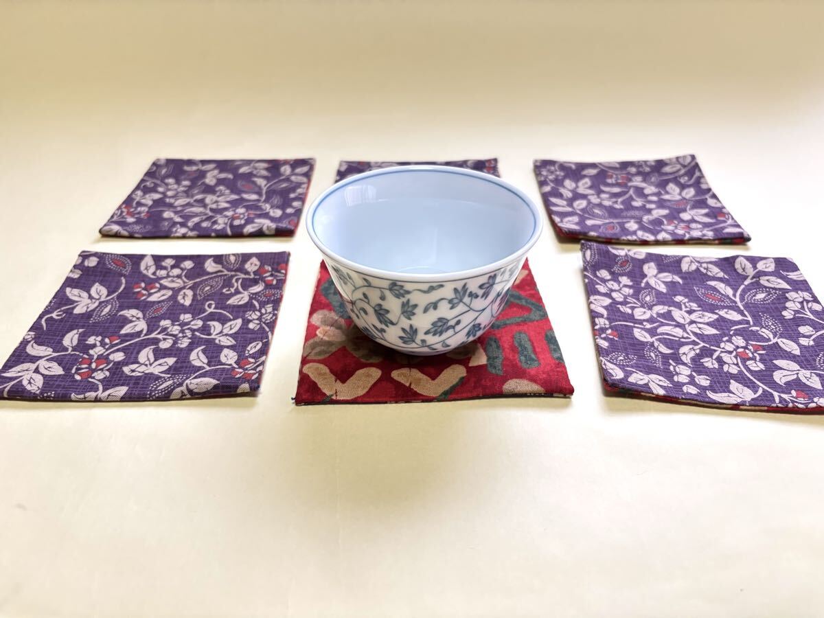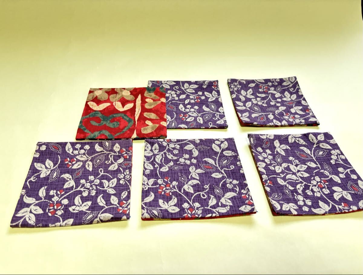 手作り未使用 和風 布コースター リバーシブル 6枚