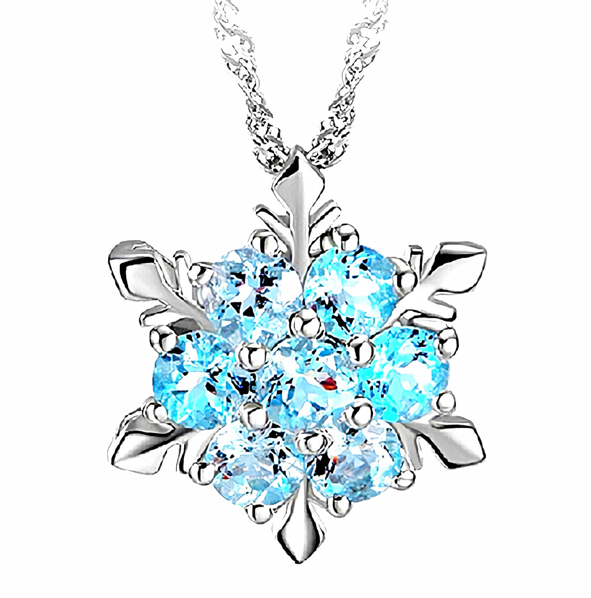 新品1円~★送料無料★雪結晶スノークリスタル水ブルートパーズ プラチナ仕上925シルバーネックレス 誕生日プレゼント連休秋ギフト国内発送