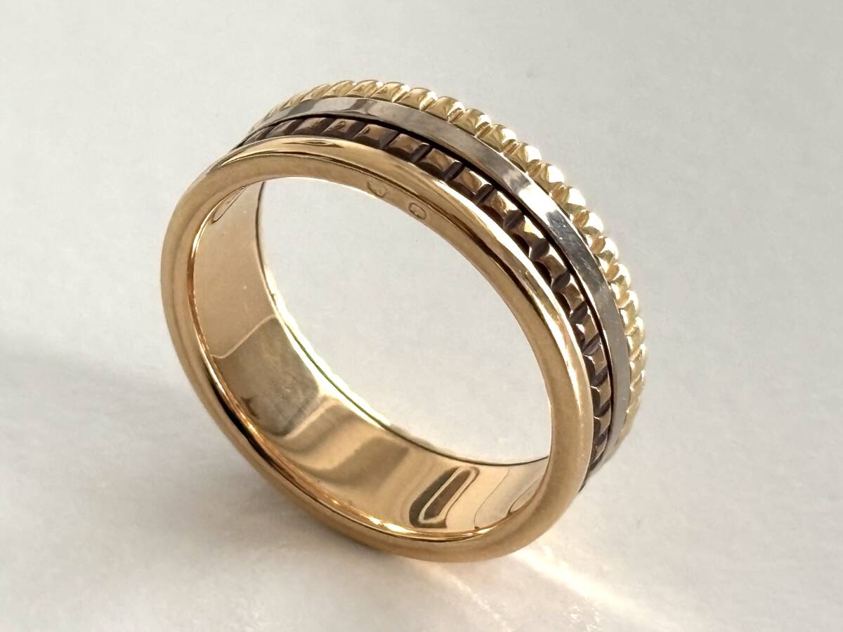 出品理由: 2年ほど前に東京の質屋にて購入。リユースですとなかなか無いサイズでしたので思い切って購入しました。最近のキャトルクラシックよりも金の使用量が多いため、ズッシリとした重厚感があります。ただ、私には若干サイズが大きい物でしたので冬場になると重みも加わって指から抜け落ちそうに感じ、使用する機会が無くなってしまいました。金の価格上昇に合わせ質屋での買取金額も上々で、ストア再販価格と比べるとかなりお安めに出品させていただいております。この機会に是非ご検討ください。