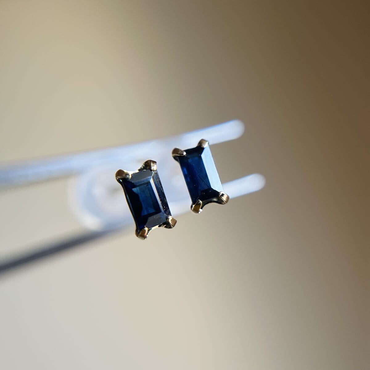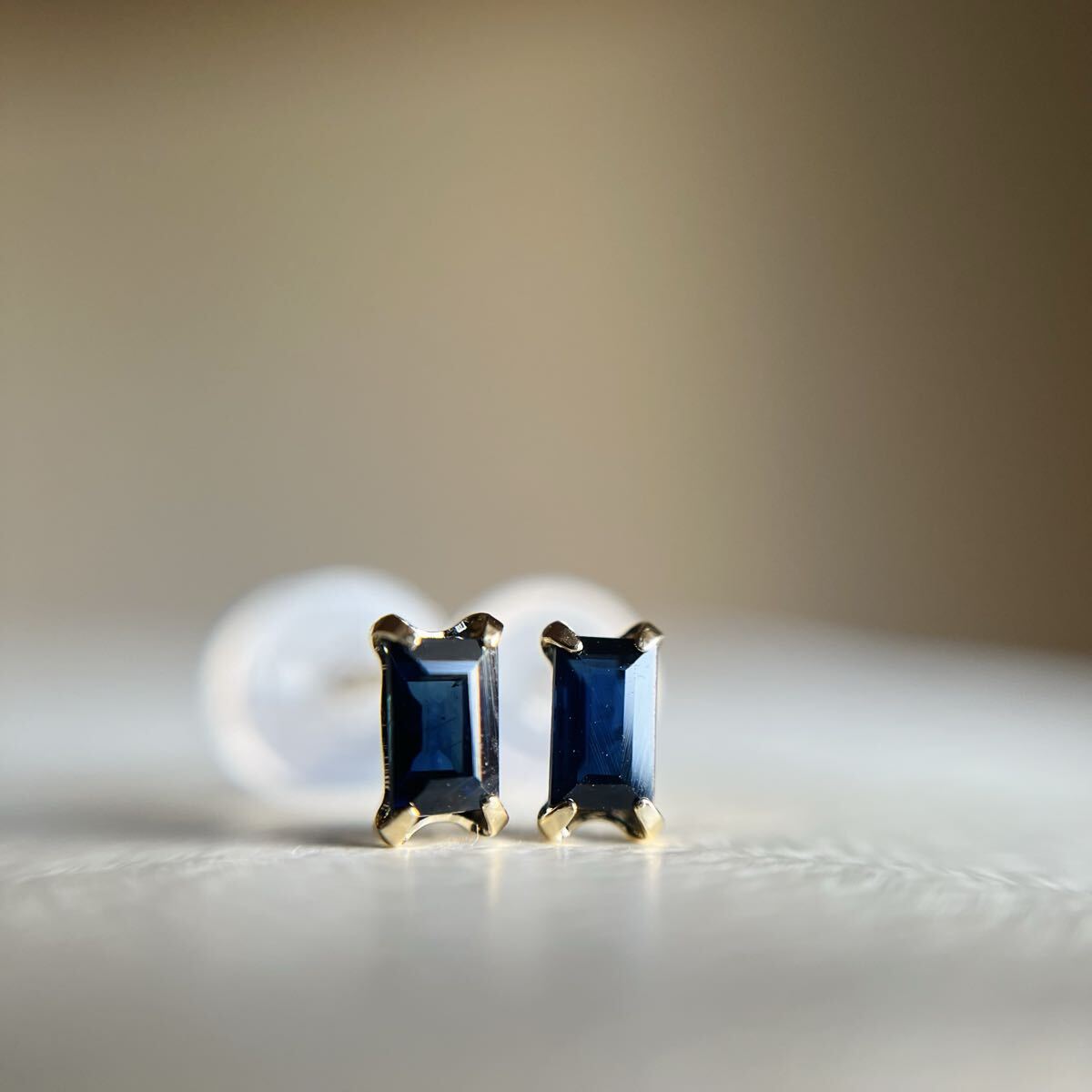 K18YG 天然石サファイア ピアス sapphire 18金 バゲットカット