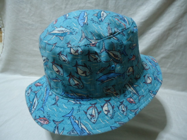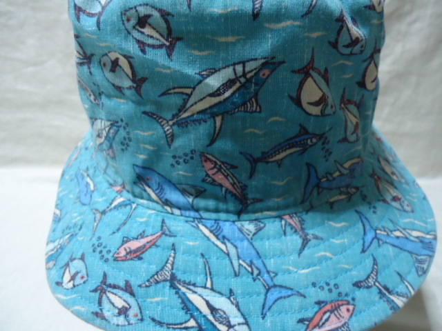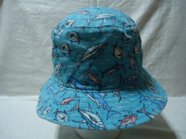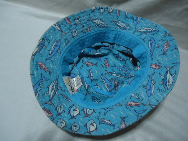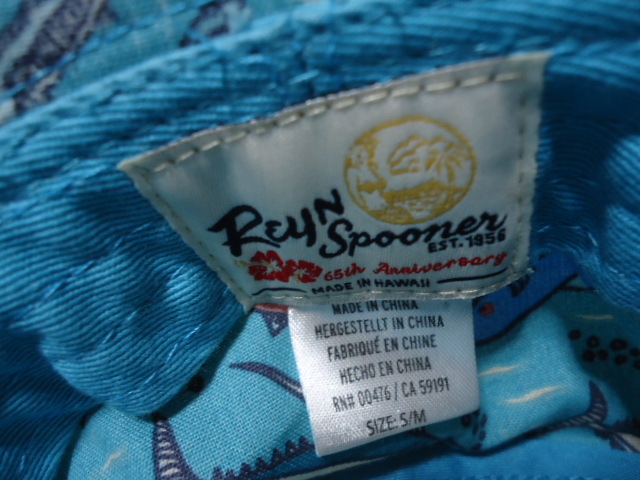 即決 ハワイ reyn spooner レインスプーナー 帽子 水色 魚柄 美品 S-M 65周年記念物