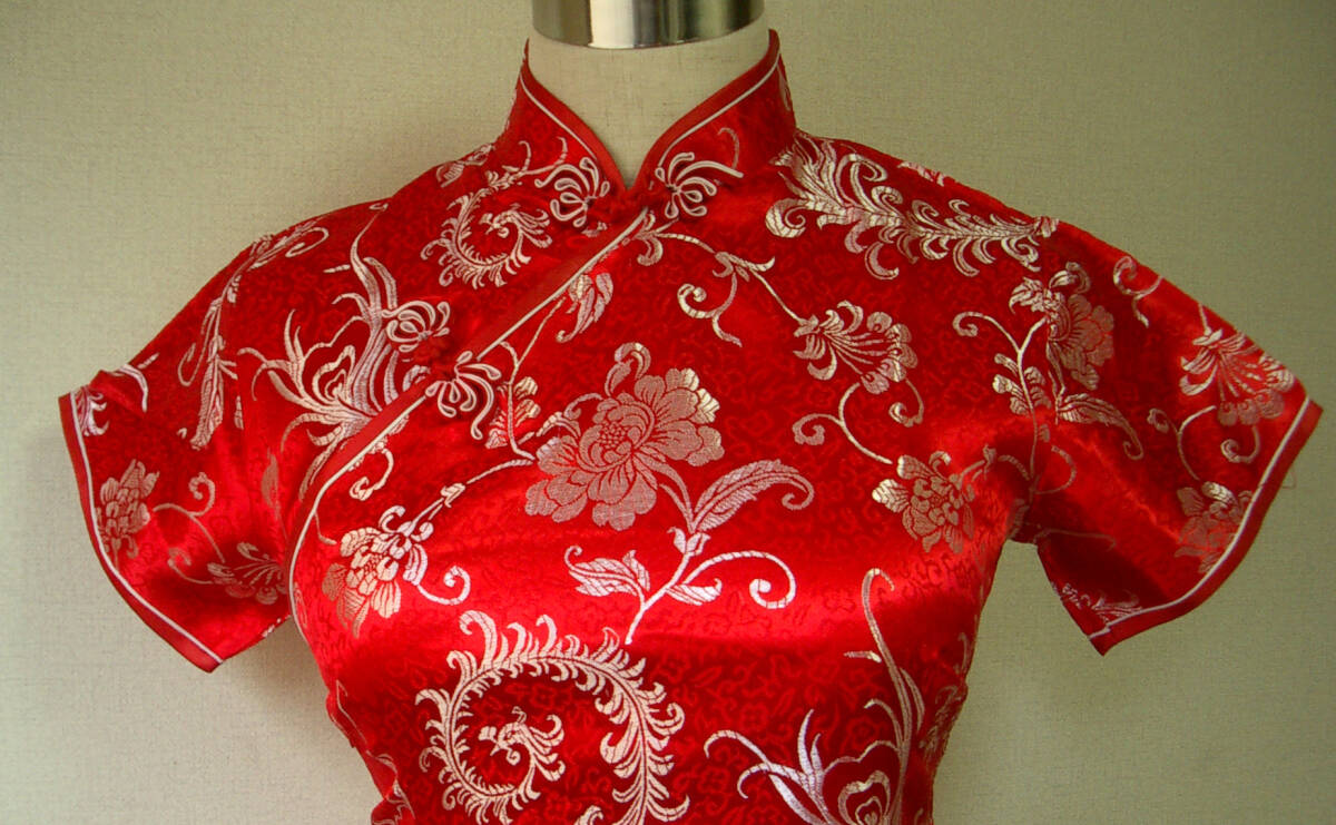 赤地銀色花模様のチャイナドレス 女性Lサイズ 新品 NO171 送料無料!