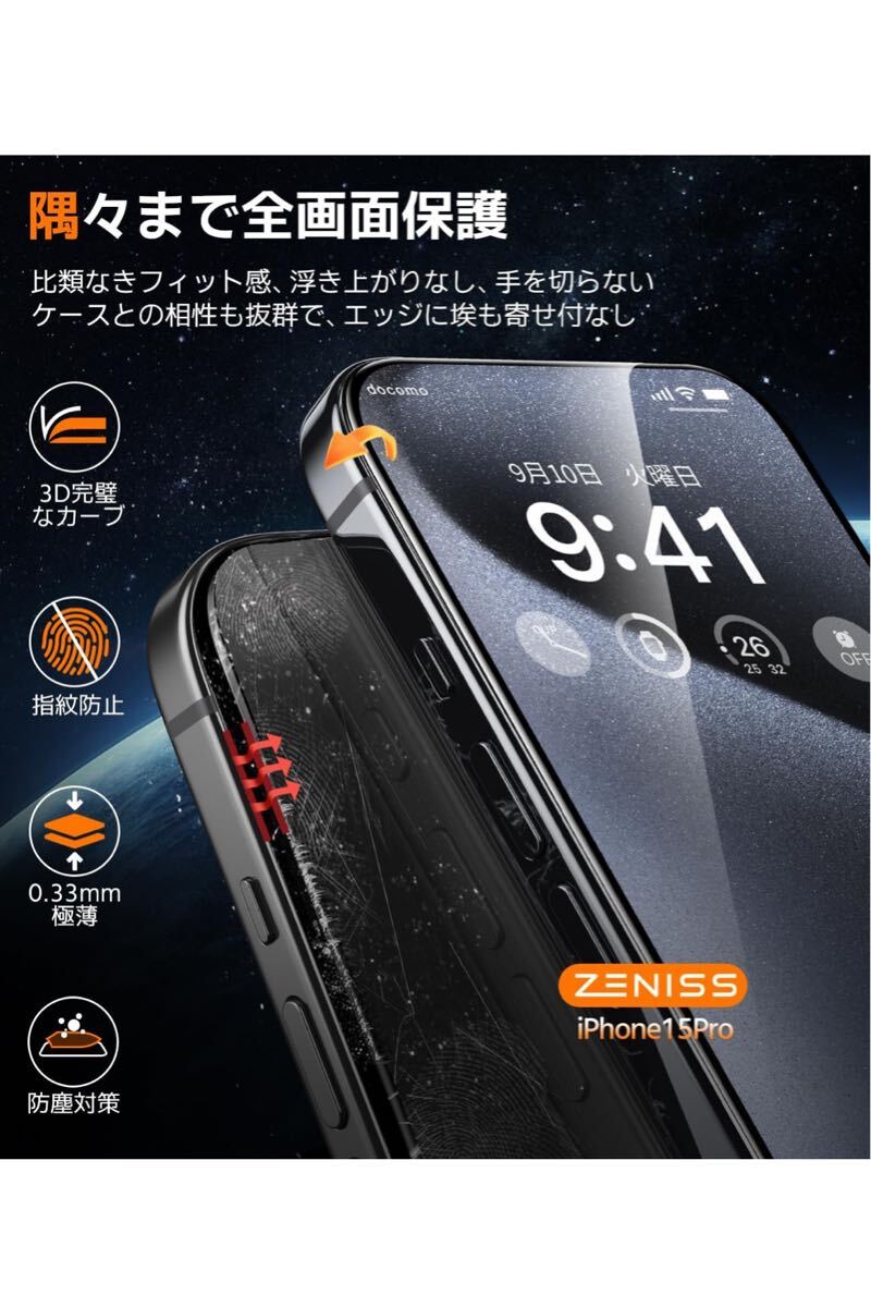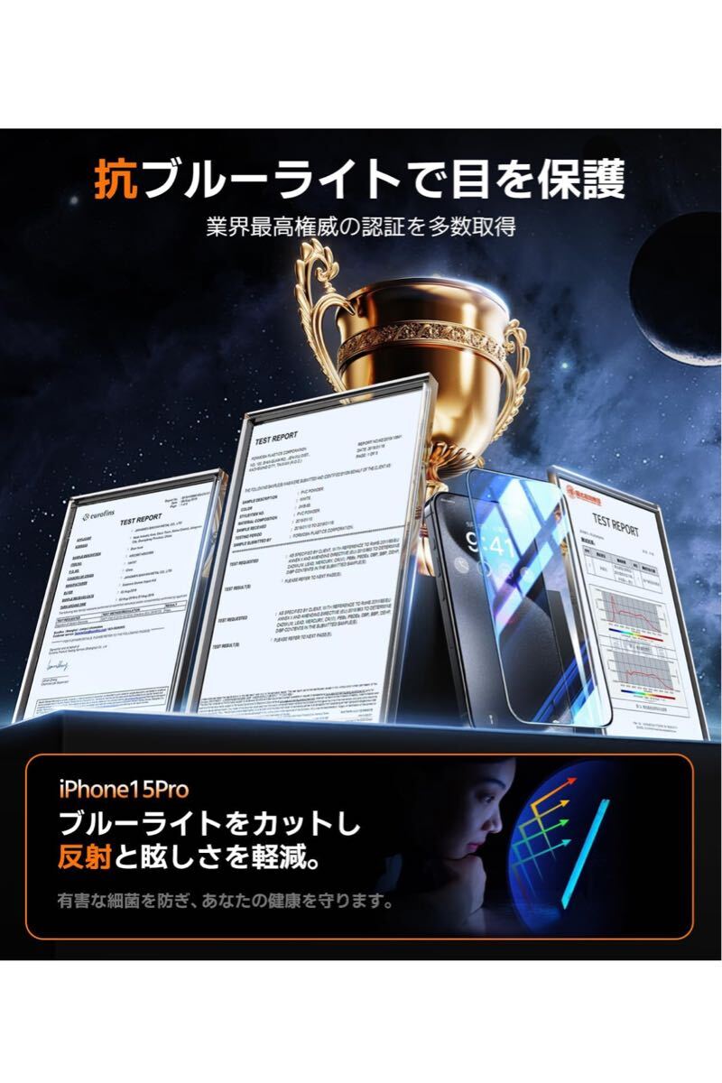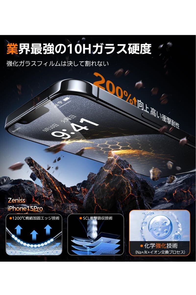 Product name: iphone 15 pro ガラスフィルム 【米軍規格航空材料&革新的なガイド枠】2枚セット いphone15pro フィルム 耐衝撃硬度10H 全面保護