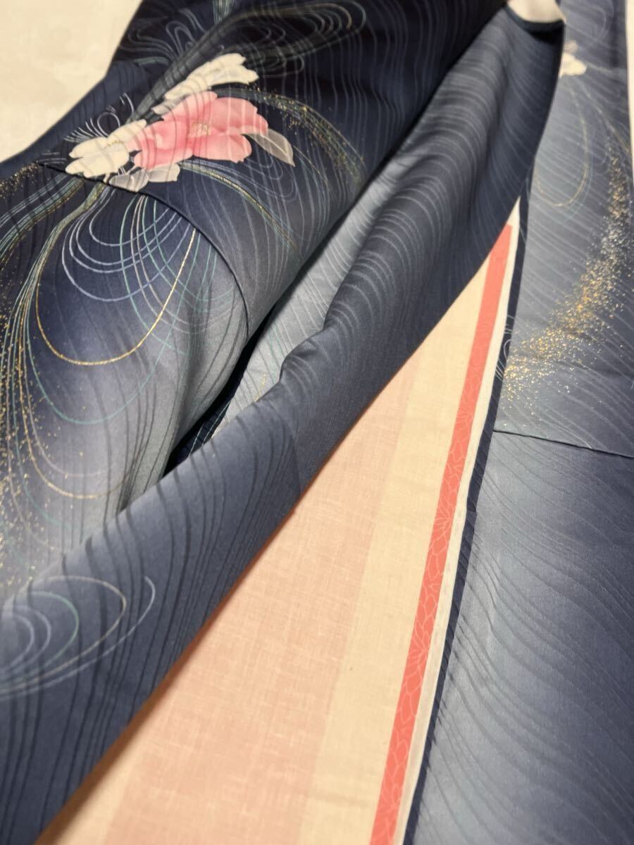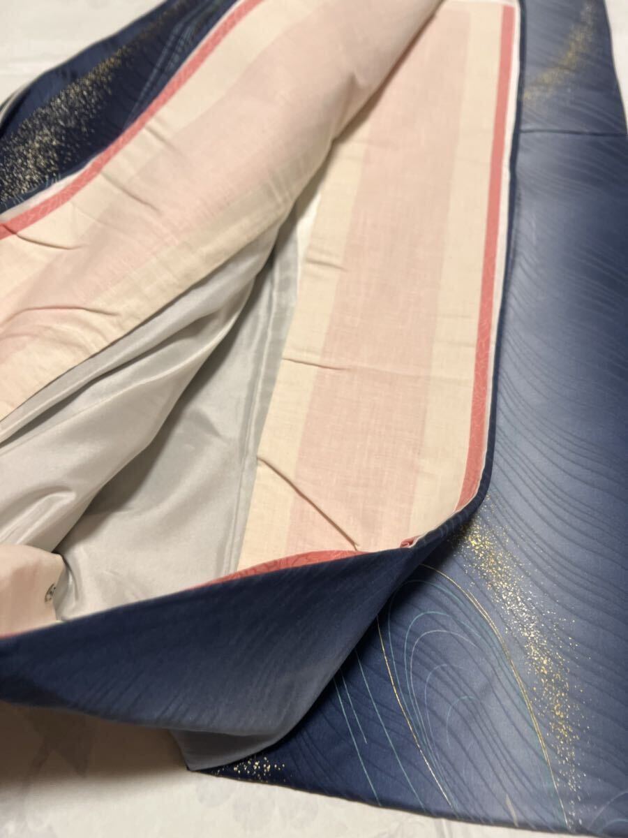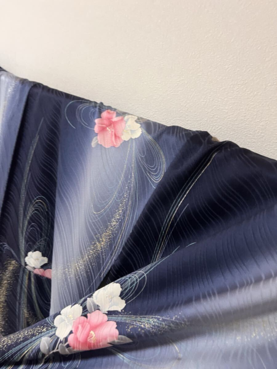 Product name: 着物 三松 着丈160cm 正絹 華 金彩 紺色系 小紋 きもの