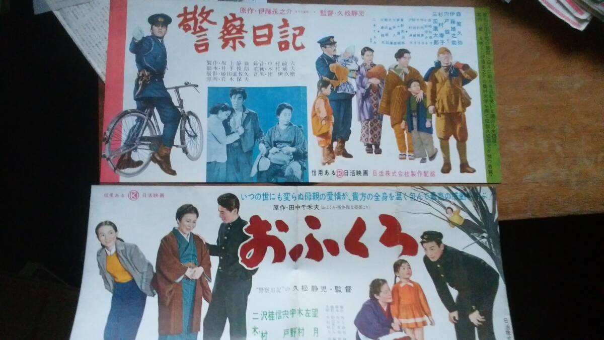 日活映画:プレスシート2点  久松静児監督 「おふくろ」「警察日記」 折目あり、並品です  映画はこ