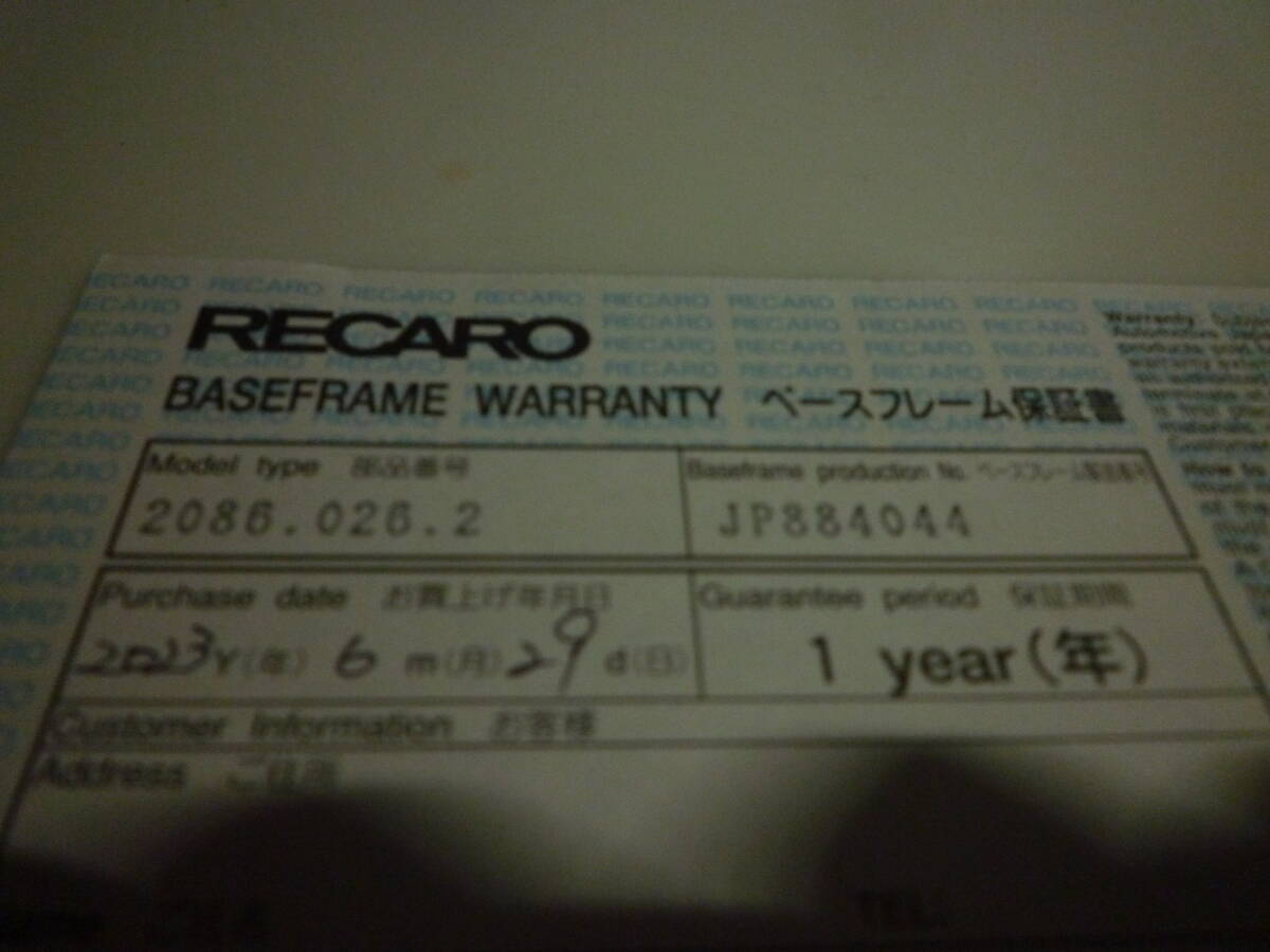 RECARO インプレッサ GC8 運転席 ベースフレーム 保証書・取説付き 美品 レカロ 純正