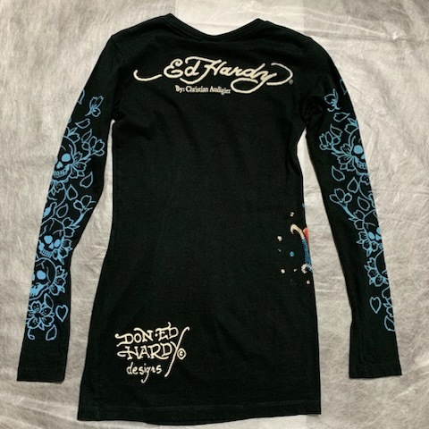 Ed Hardy エドハーディー レディース長袖Tシャツ 黒