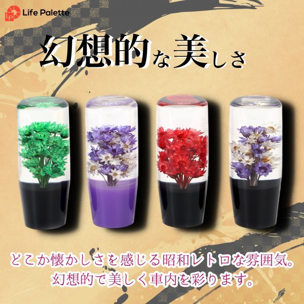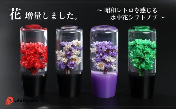 昭和レトロを感じる水中花が美しく幻想的なクリスタルシフトノブ。