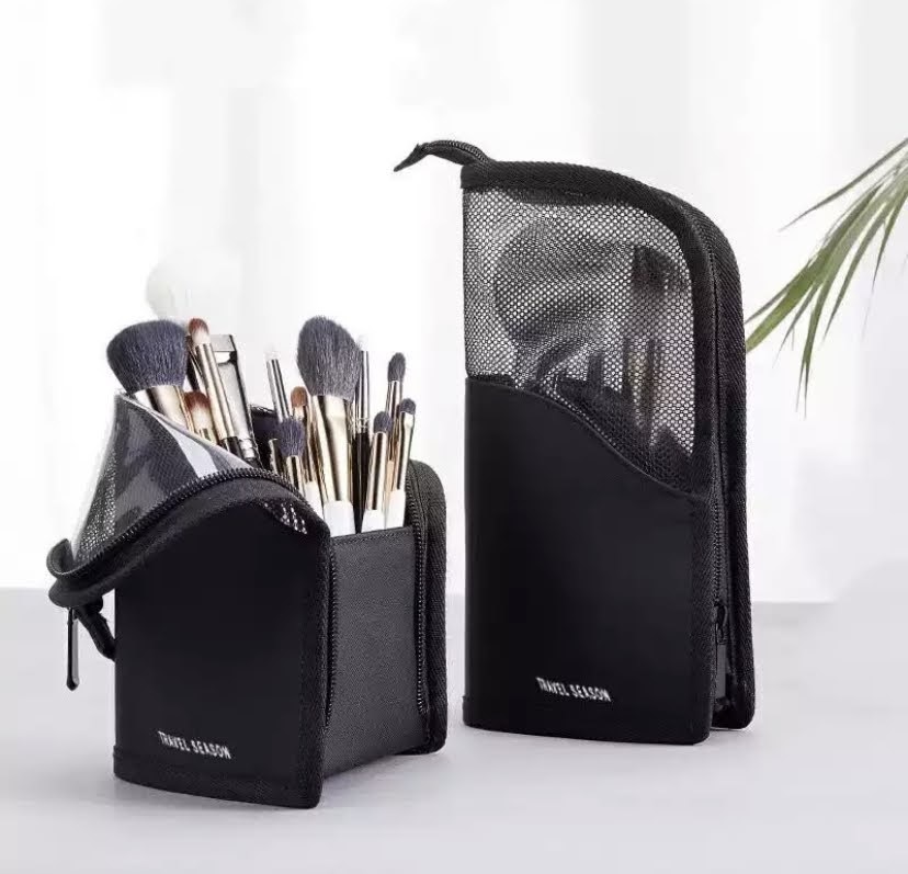 ■新品■スタンド式■メイクブラシ ケース【ブラック】化粧ポーチ 旅行収納 大容量 自立式 多機能 旅行 ペンケース