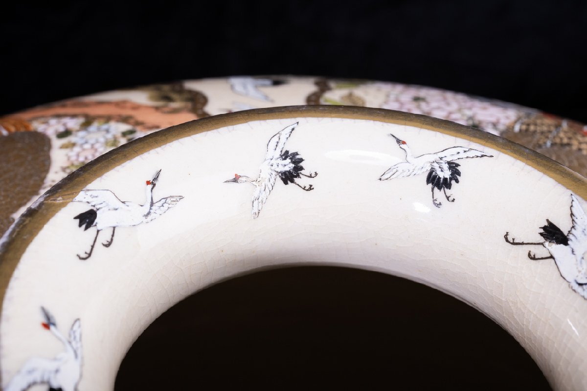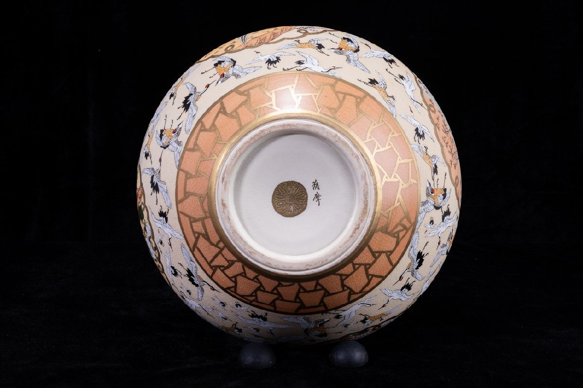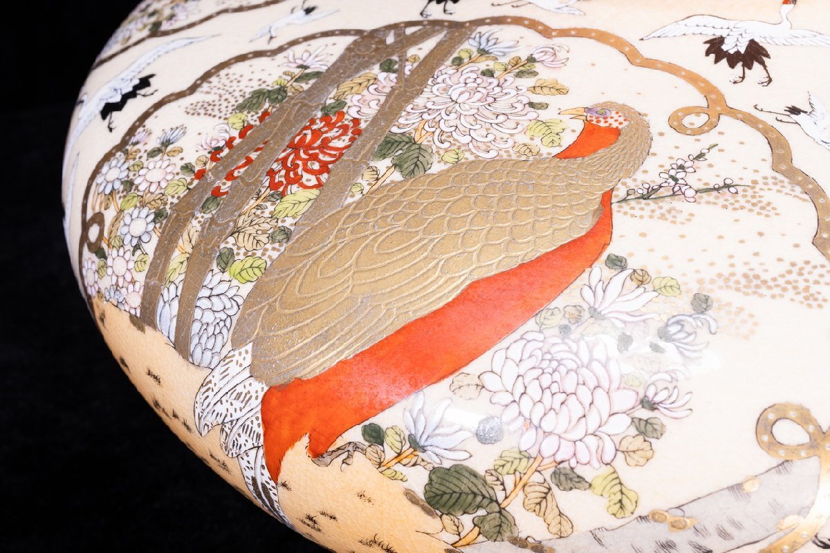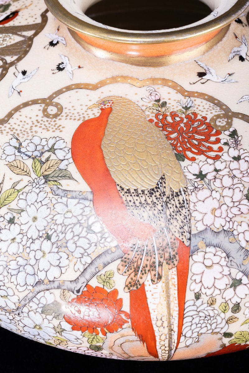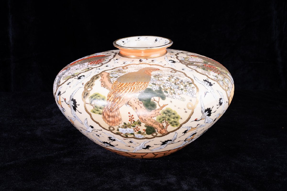 Product name: 【珍品堂】1円から M08-P05 薩摩焼 金彩 金襴手 群鶴図 飾壺 花瓶 座銘 高29cm 花器 花入 置物 日本陶器 骨董品 古美術