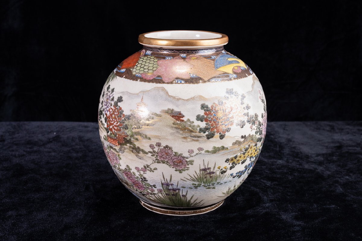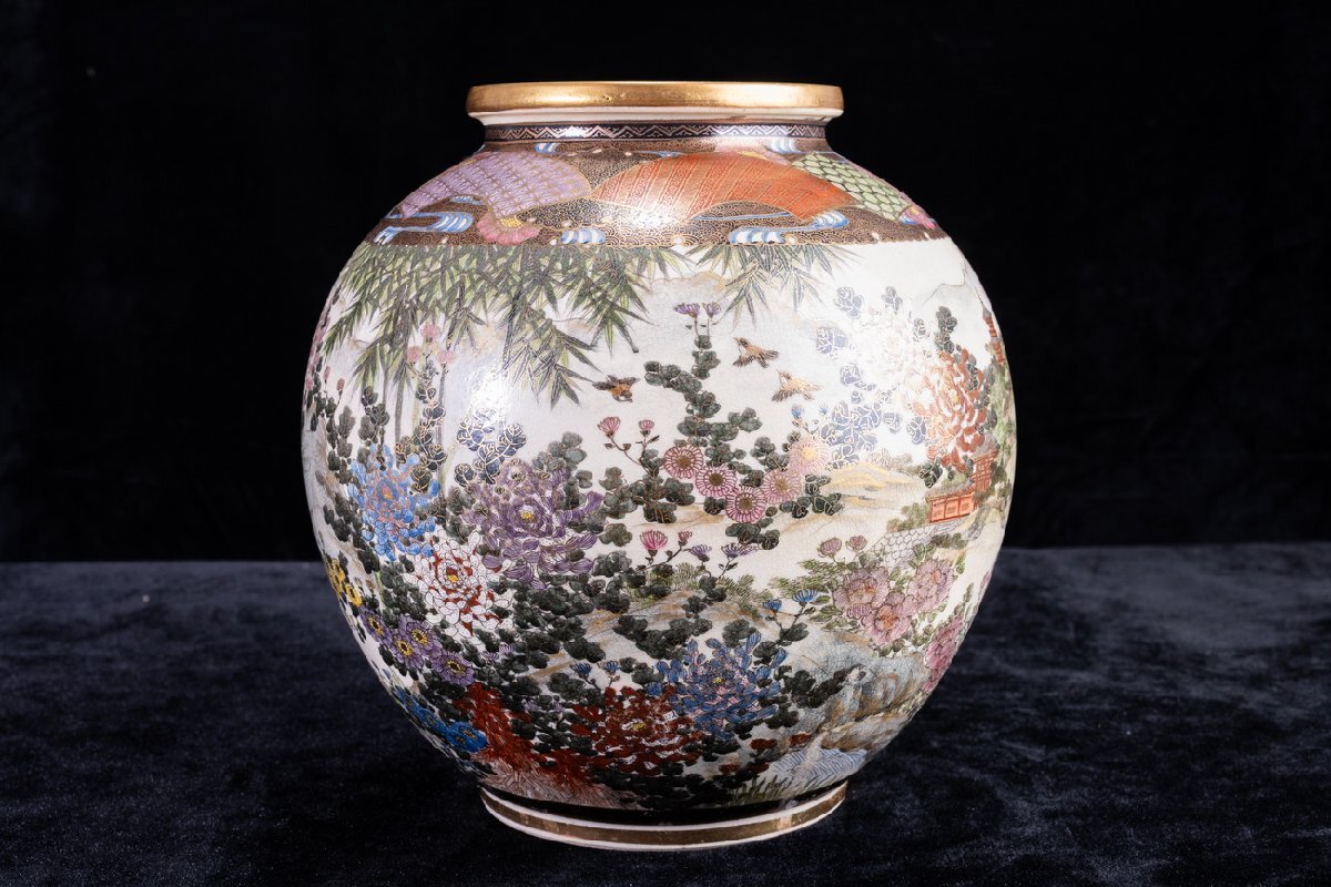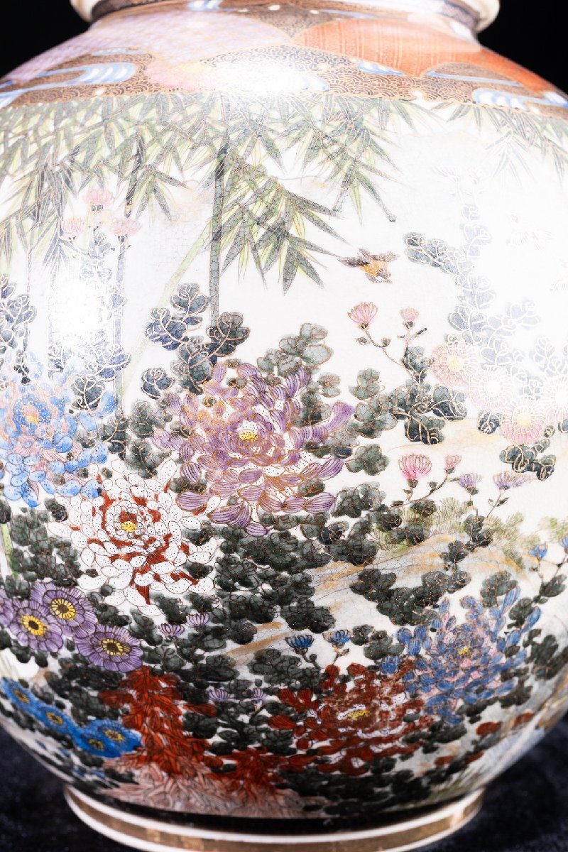 Product name: 【珍品堂】1円から P66-V30 薩摩焼 谷口 造 在銘 金彩 色絵 花紋 繊細描き 花瓶 壺 飾壺 高25cm 共箱 木箱 花入 伝統 骨董品 古美術 時代物