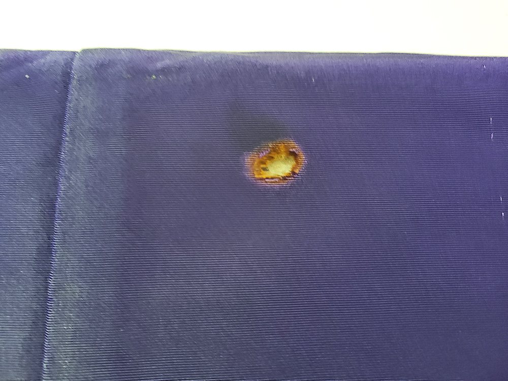 状態=本体:後ろ右袖に焦げ穴と白い汚れがあります。裾辺りなどに保管によるカビ汚れがあります。