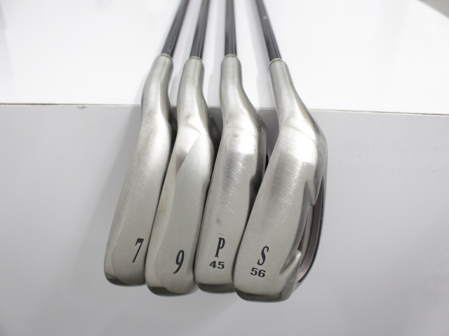 番手は、7番・9番・PW(45度)・SW(56度)の4本だけとなります。ヘッドには細かな擦り傷がついておりますが、目立つ様な深い傷は有りません。グリップは特に傷みは無く十分に使える状態です。