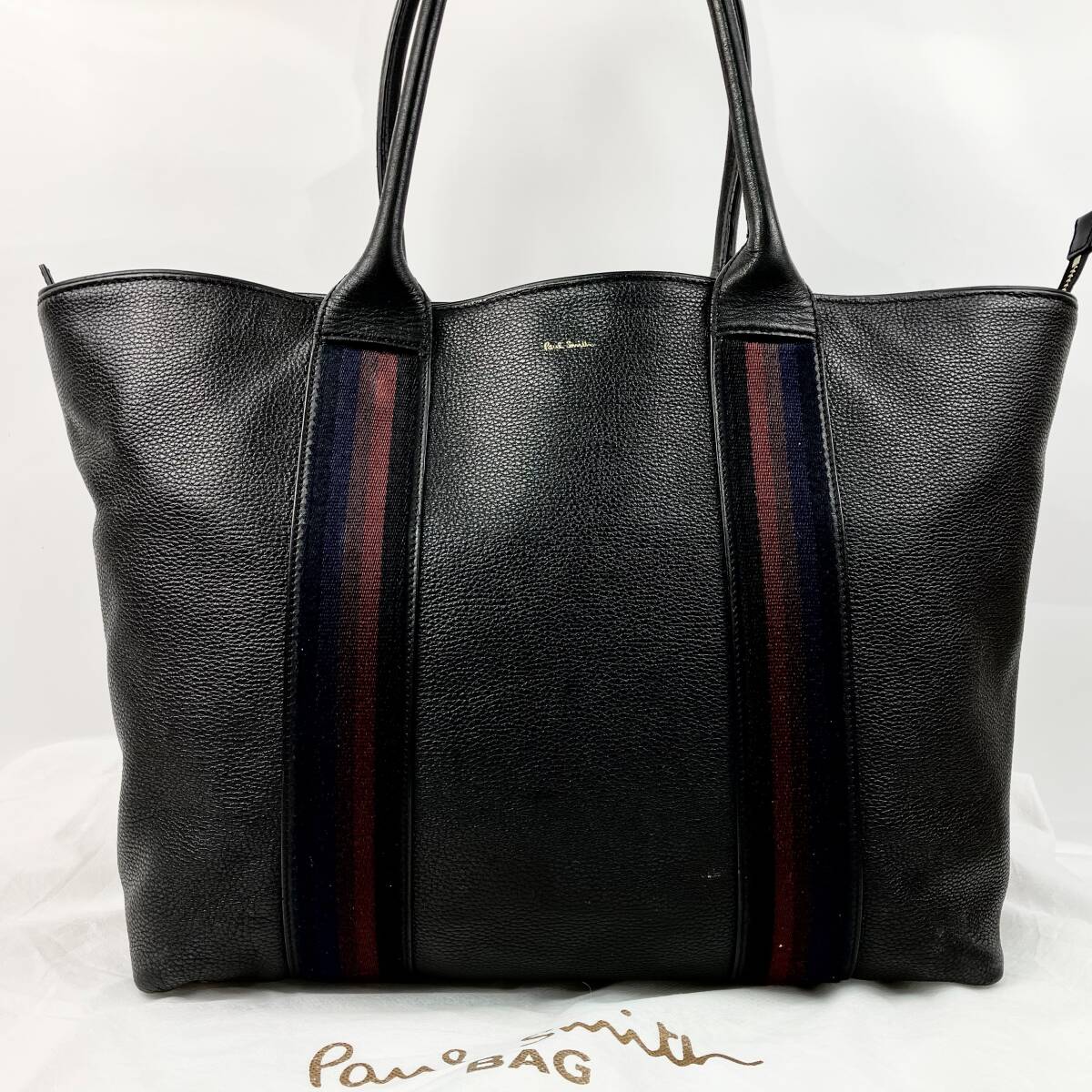 Product name: 美品 PaulSmith ポールスミス トート バッグ ストライプ ビジネス A4 ショルダー 本革 ブリーフケース レザー シボ革 肩掛 メンズ ブラック