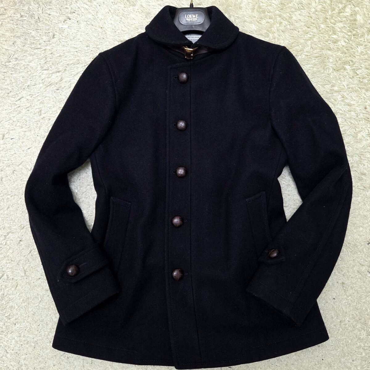 Product name: ユナイテッドアローズ green label relaxing UNITEDARROWS ジャケット ピーコート Pコート アウター 羽織 ウール 牛革 くるみボタン 黒 S