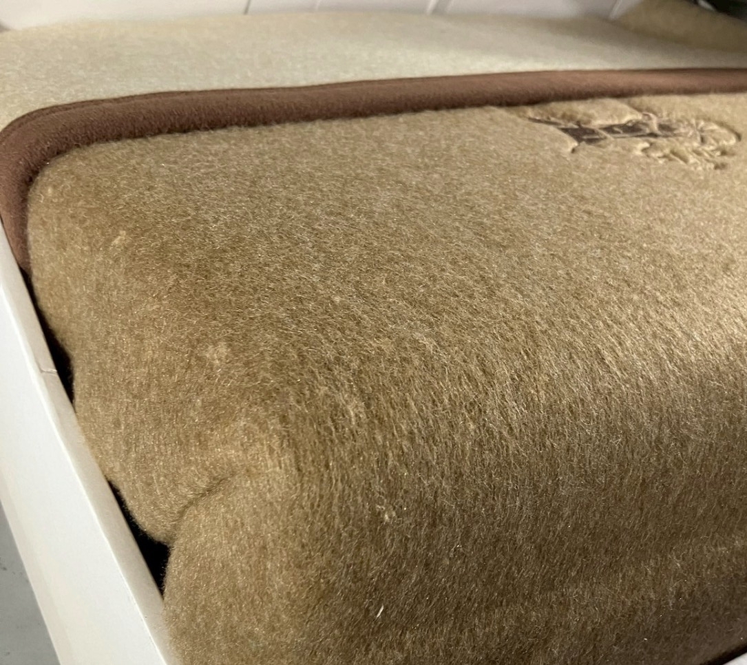 Product name: B2220 西川 CELINE セリーヌ アクリル毛布 140×200cm ブラウン×ベージュ系 ブランド ロゴ 洗濯可能○ 未使用 箱入 同梱不可