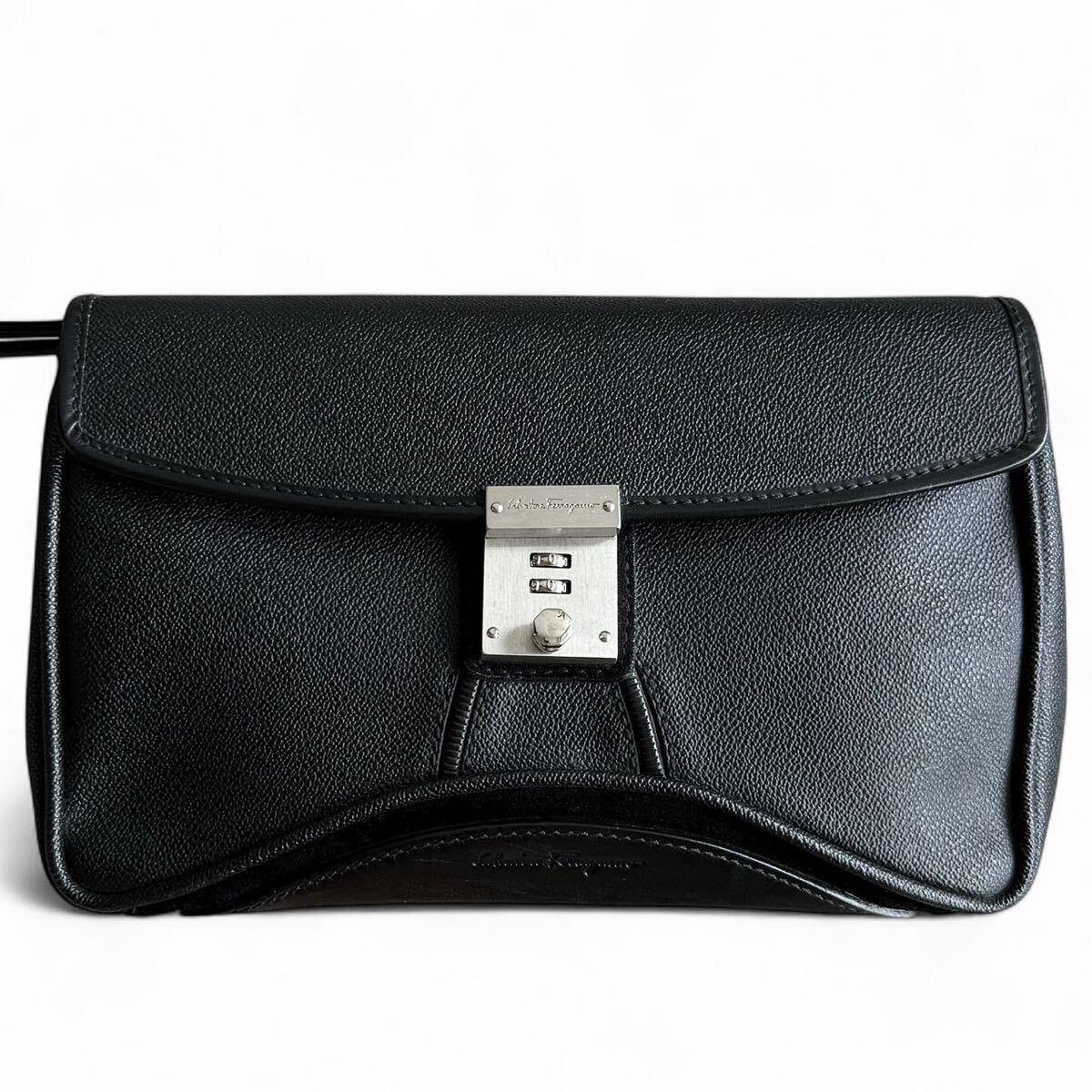 Product name: 極美品●Salvatore Ferragamo フェラガモ メンズ セカンドバッグ クラッチバッグ ビジネス 鞄 ロゴ型押し ハンドルストラップ付 レザー 黒