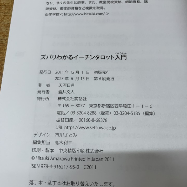 Product name: ●01)【1点限り!】ズバリわかるイーチンタロット入門/天河日月/説話社/2023年発行/占い/A