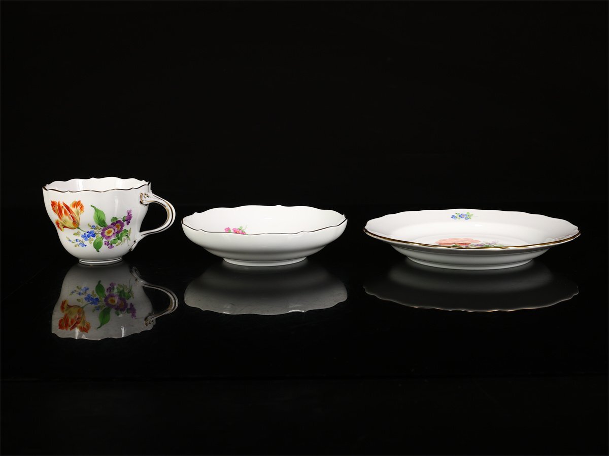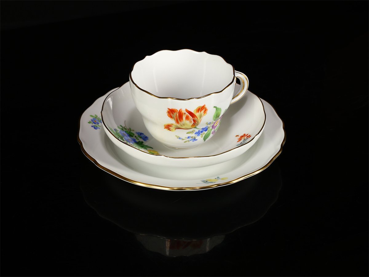 Product name: 【吉】CN422 MEISSEN 【マイセン】 色絵 ベーシックフラワー カップ&ソーサー プレート 1組 3点セット/美品!
