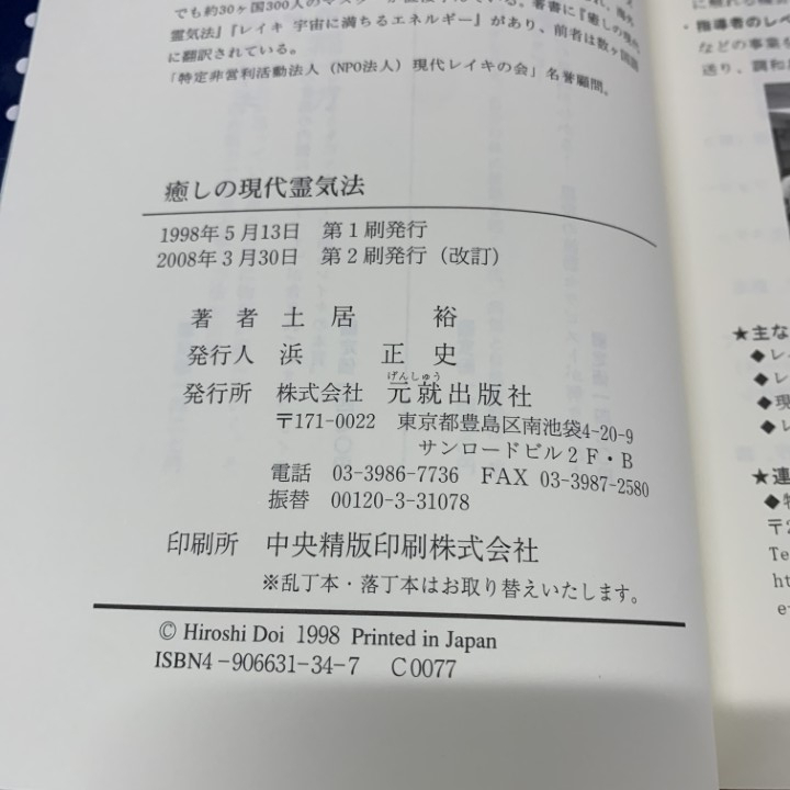 Product name: ●01)【1点限り!】癒しの現代霊気法/土居裕/元就出版社/2008年発行/A