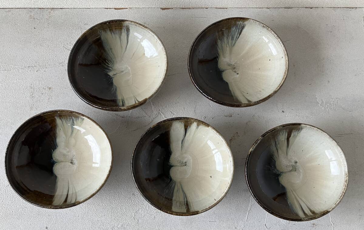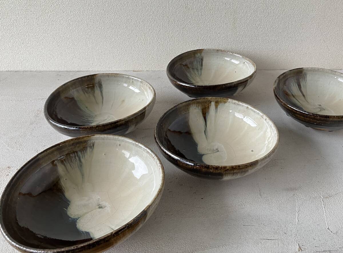 【OAN】作家物 銘有 朝鮮唐津 5寸 鉢 5客セット 骨董 古美術 古道具 古民藝茶道具 懐石 古玩 在銘 向付 中里重利 小島直喜 曹源窯 黒田陶苑