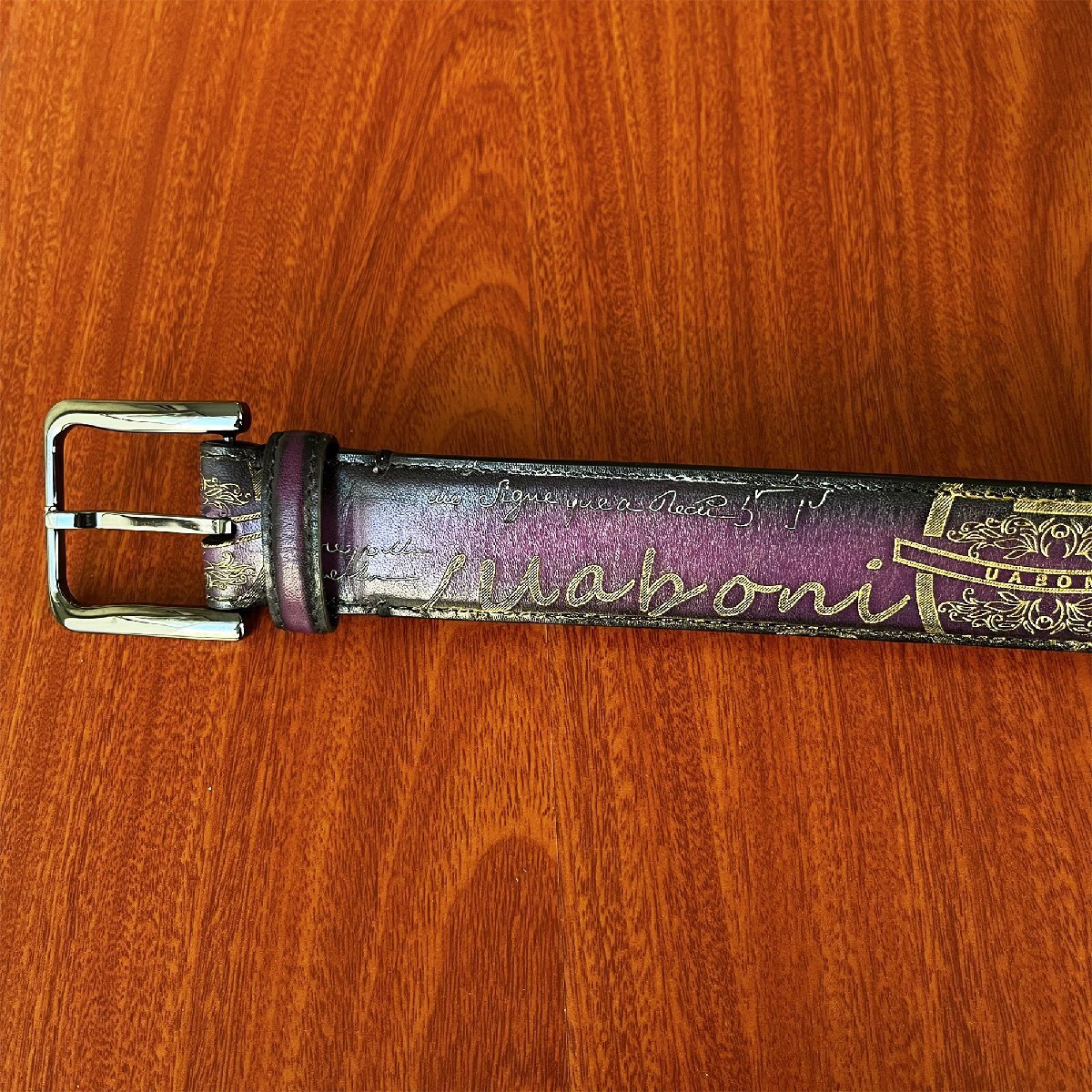 希少 EU製 定価9万◆UABONI*ユアボニ*幻のパティーヌ*ベルト◆手染 ゴールデン 調節可能 本革 レザー ビジネス 紳士用 メンズ ベルルッティ
