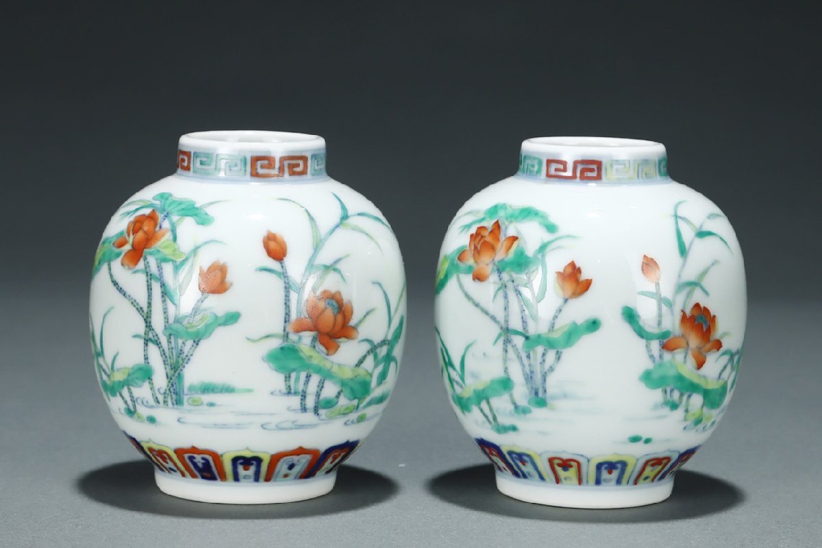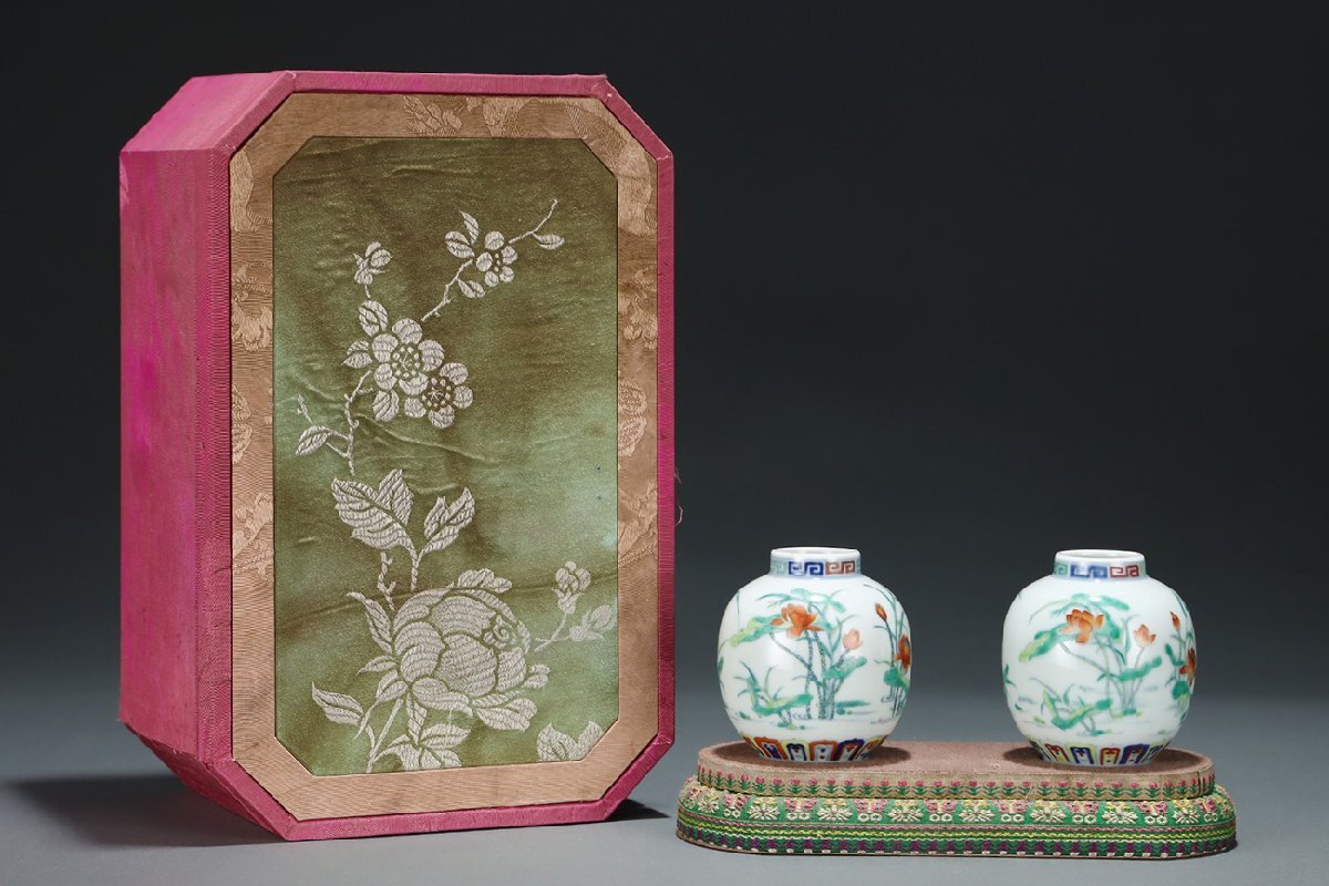 Product name: 【安】清時代 大清雍正年製 斗彩荷花紋罐一対 共箱 唐瓷 染付 古陶瓷 中国古美術 古董品 251