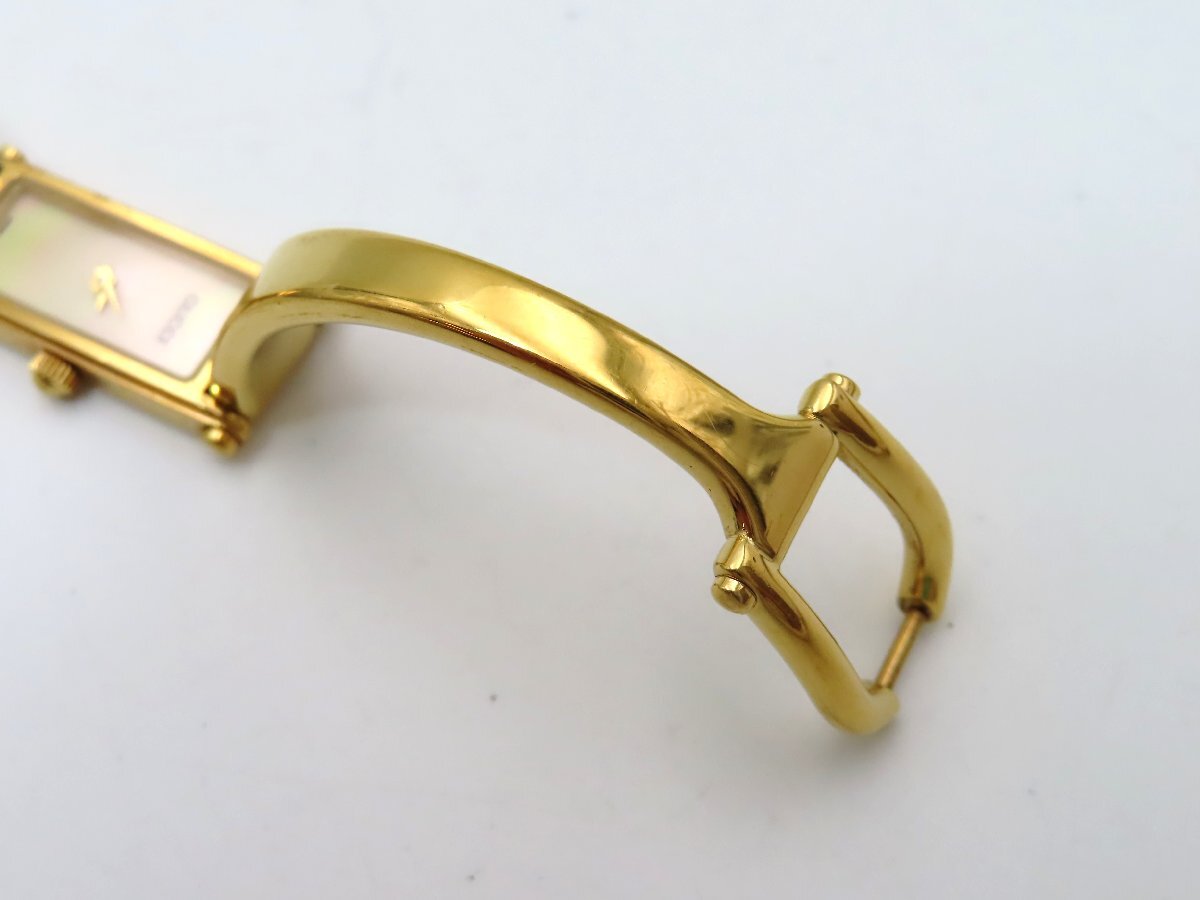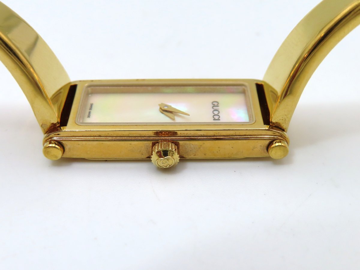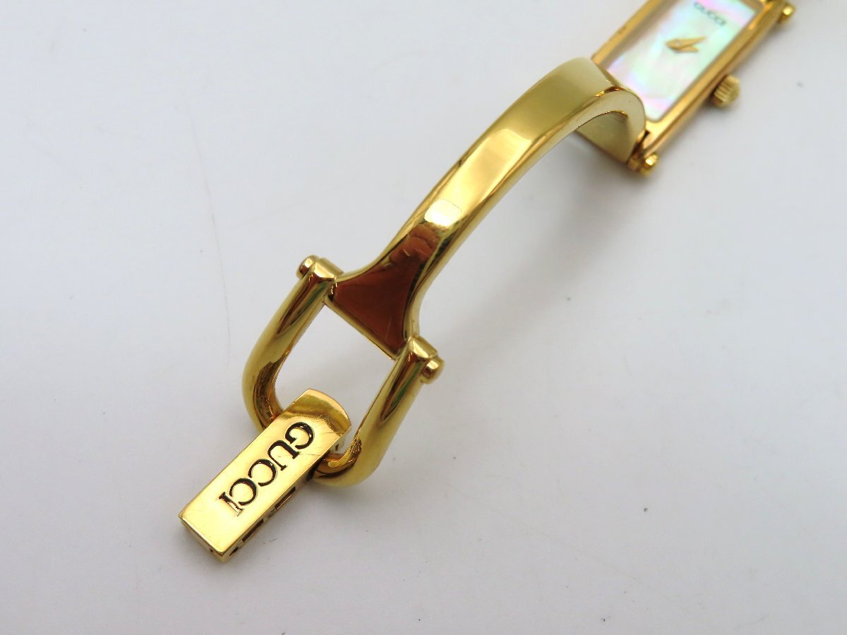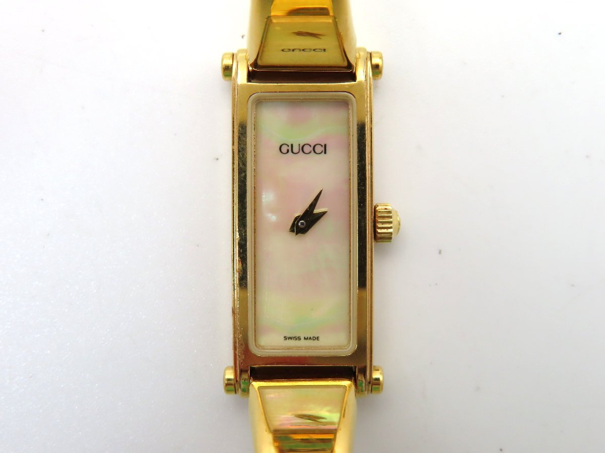 1円 グッチ 1500 バングルウォッチ GP シェル文字盤 レディース 稼働 QZ 27299 LGRA
