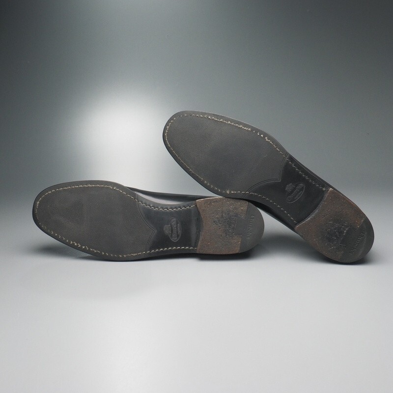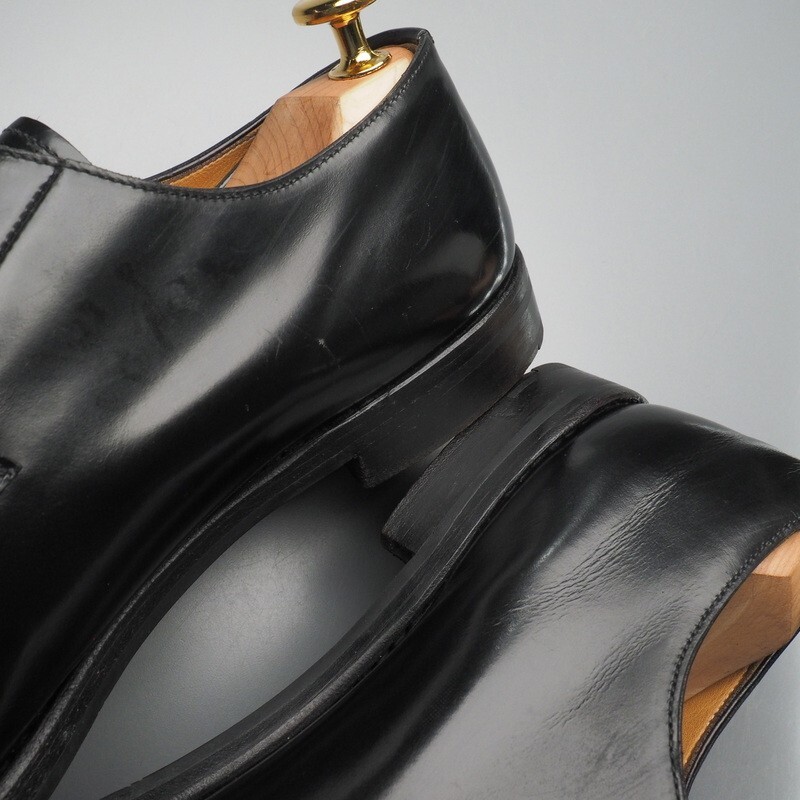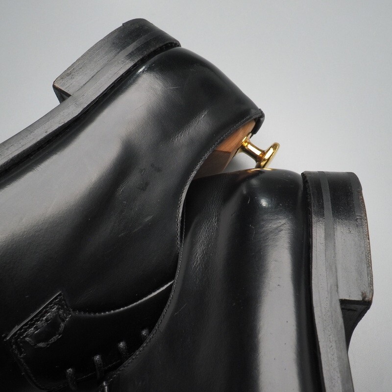 甲と踵に多少の履き皺、踵に多少の小傷、アウトソールに2mm程度の摩耗がございますが、ユーズド品ではこれからも十分ご愛用いただけるコンディションです。