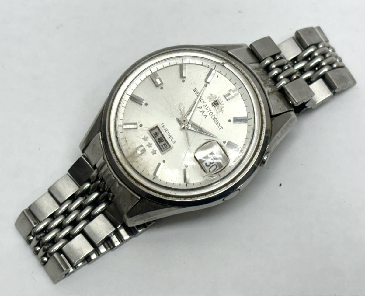 1円〜 ORIENT SWIMMER AAA 014910NK メンズ 腕時計 オリエント 3つ星 19JEWELS 自動巻き AT WEEKLY AUTO ORIENT 当時物 希少 古時計 SS