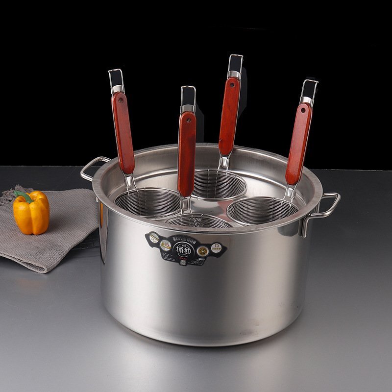 Product name: 新入荷 業務用店舗用 そばゆで釜 茹麺鍋セット リング付 ザル付 3*13cm ステンレス IH対応 ふきこぼれない 3穴