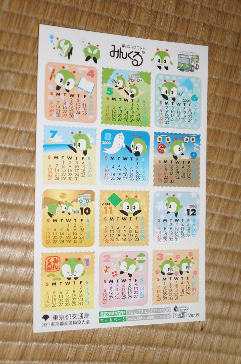 ・都営バスマスコットキャラクター「みんくる」の粗品のシール等5枚です。