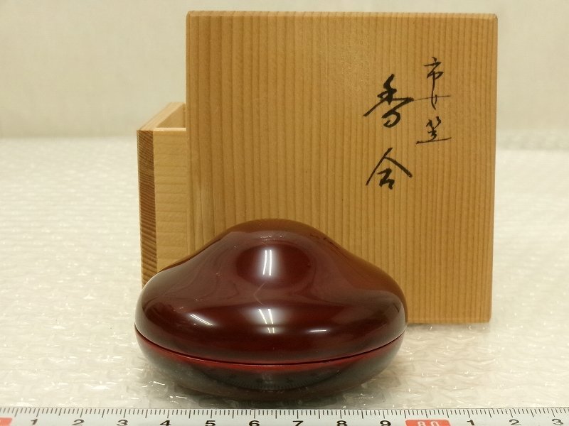 Product name: P6222 平安 象彦 溜塗 市女笠 香合 茶器 茶道具 木製漆器 共箱