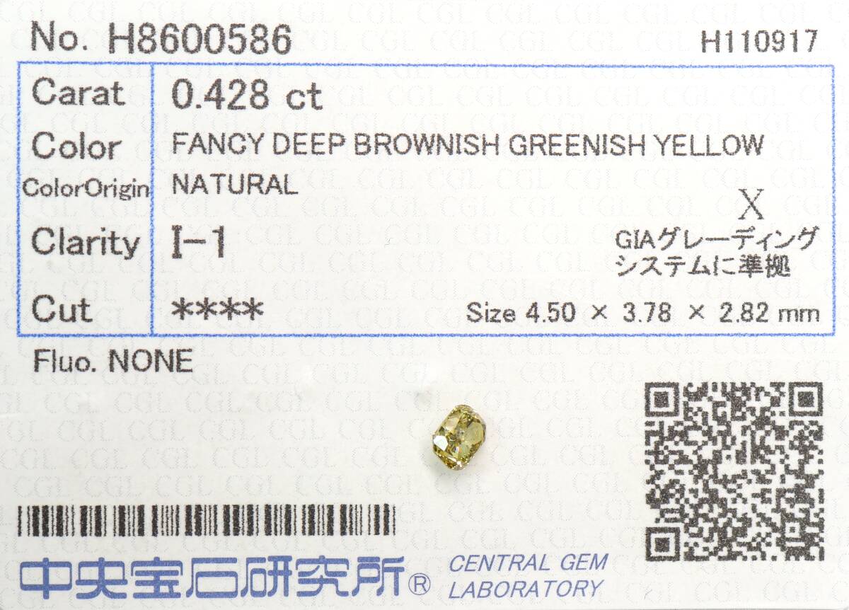 0.428ct 天然ダイヤ FANCY DEEP BROWNISH GREENISH YELLOW(ナチュラルカラー)I1