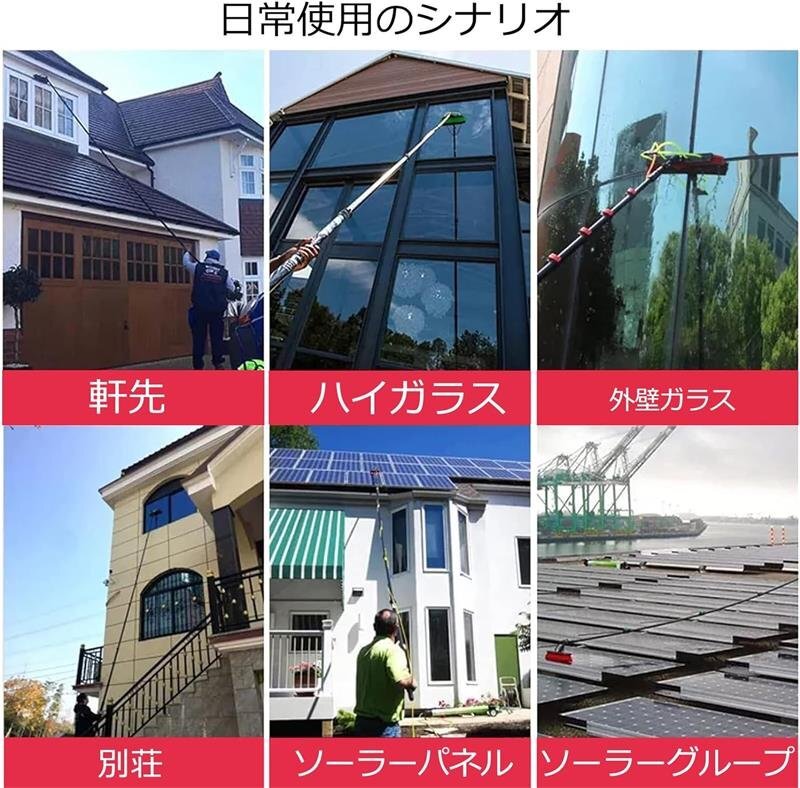 【メリット】通常の掃除ブラシよりも便利で、水をスプレーしながら埃や汚れを落とし、デッキ、屋根、高窓、屋外の壁、ソーラーパネル、パティオ、ガレージ、家のサイディング、側溝、車、RV、商業看板、建物、通常では到達できない高さの清掃。