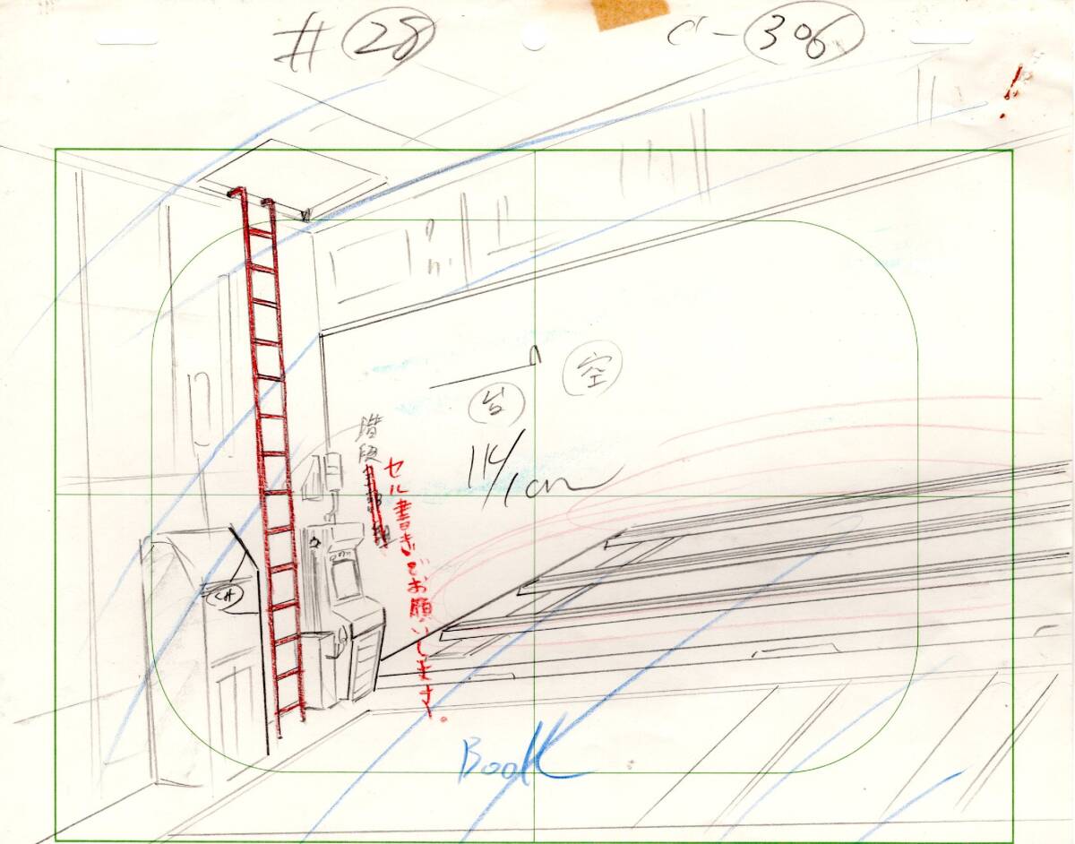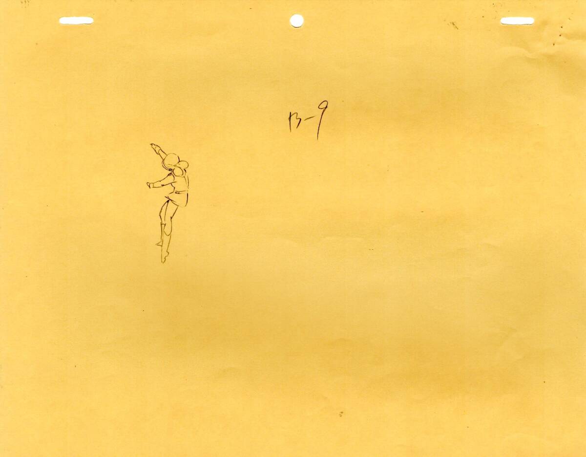 実際の制作で使用された物です、28話、カットナンバー306、修正原画9枚、レイアウト1枚です。