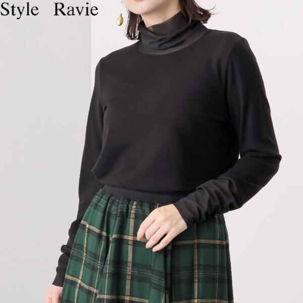 Product name: 送料300円(税込)■pf587■スタイル・ラヴィー チュールアクセント なめらかプルオーバー 9号 ブラック【シンオク】