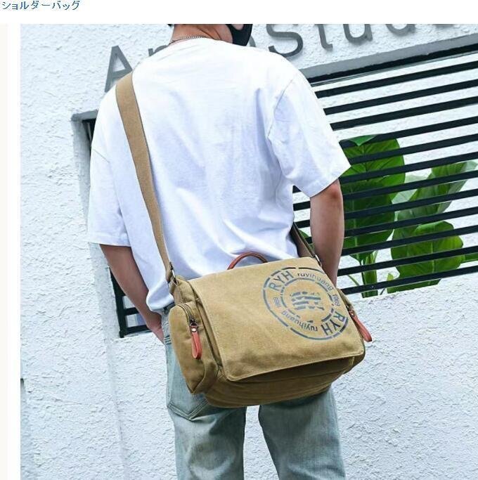 Product name: 多機能 帆布 ショルダーバッグ メンズバッグ 斜めがけバッグ 大容量 運動 2WAYバッグ 帆布 カーキ色 軽量 無地 鞄 カバン  グリーン
