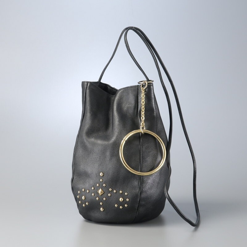 Product name: MI1614▼R・PELLEGRINO*スタッズ装飾 レザーポシェット ショルダーバッグ クロスボディ 斜め掛け鞄 ブラック