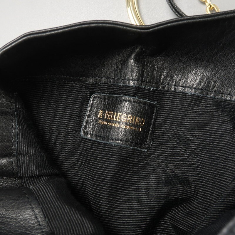 MI1614▼R・PELLEGRINO*スタッズ装飾 レザーポシェット ショルダーバッグ クロスボディ 斜め掛け鞄 ブラック