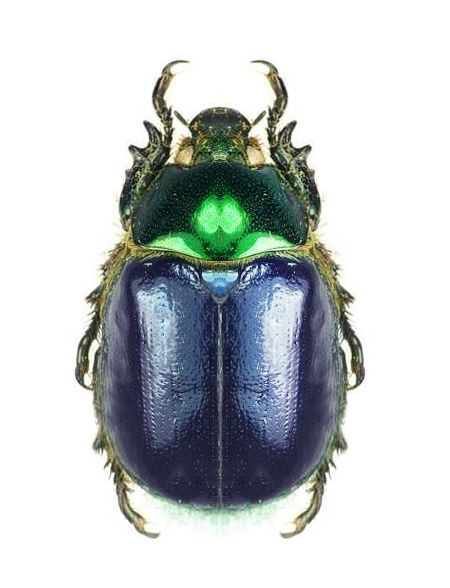 形態的にはフツーのコガネだが、胸部がグリーン、エリトトラが深いブルー。