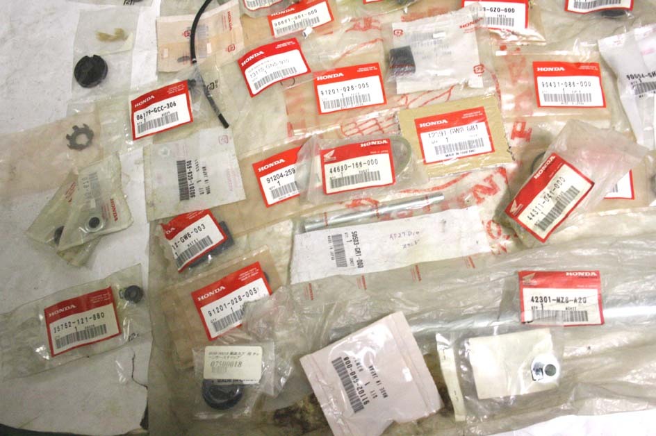 70s~00sの、ホンダ純正、新品未開封の新品未使用のままの、カブC50、DAX、モンキー、モトコンポ、DIO、ズーマー等などの、、、膨大量の新品未開封、詳細確認しきれない、多数 1セットです。