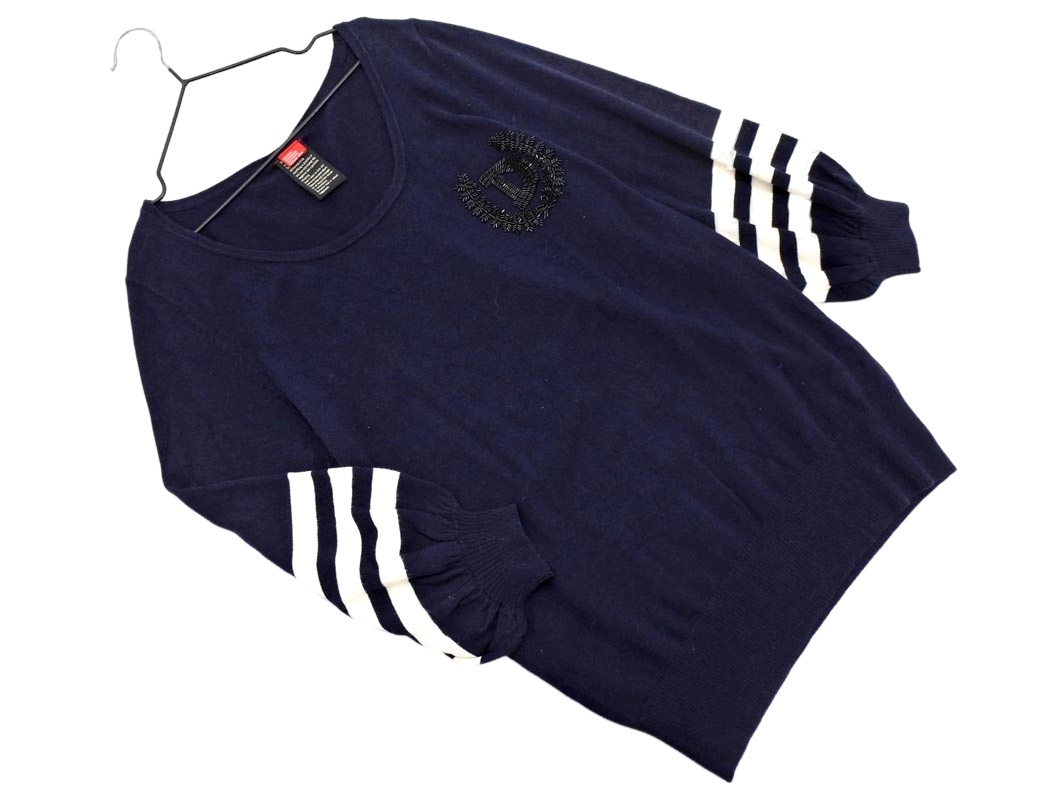 Product name: DOUBLE STANDARD CLOTHING ダブルスタンダードクロージング ビーズ ライン ニット セーター 紺x白 ◇■ ☆ fjc9 レディース