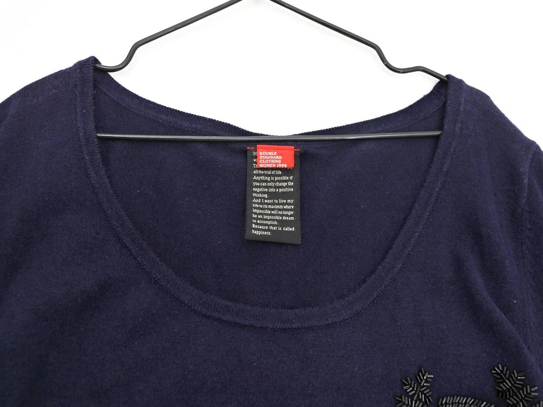 DOUBLE STANDARD CLOTHING ダブルスタンダードクロージング ビーズ ライン ニット セーター 紺x白 ◇■ ☆ fjc9 レディース