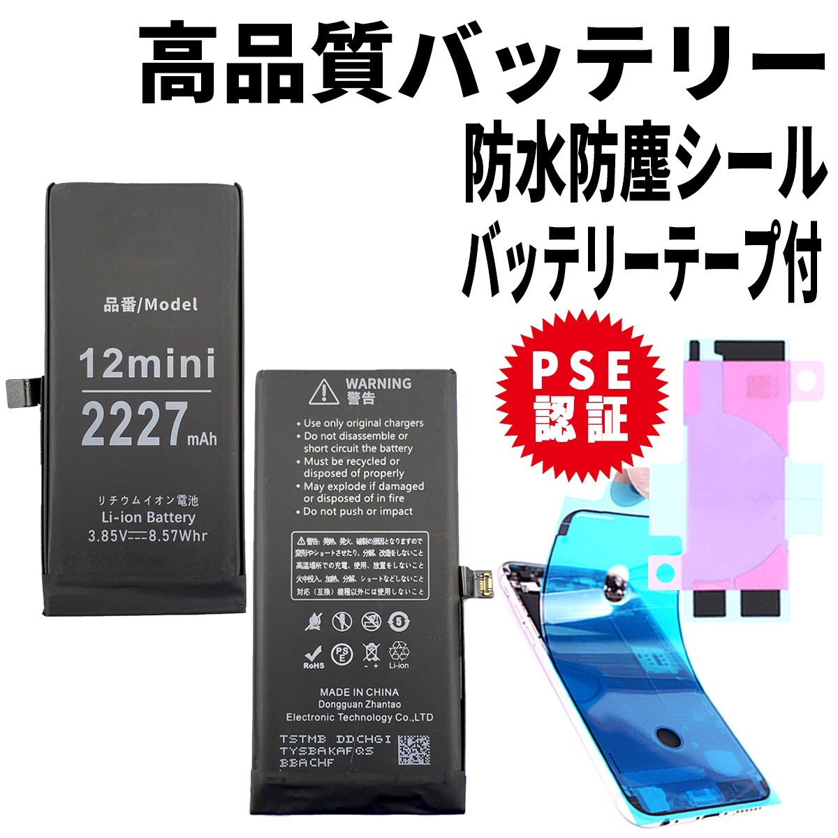 Product name: 即日発送!純正同等品新品! iPhone12 mini バッテリー A2398 電池パック交換 内蔵battery 両面テープ 防水シール 修理工具無し
