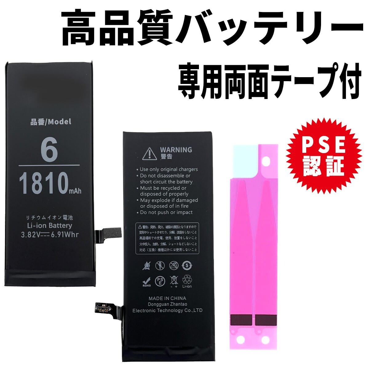 iPhone6 用 高品質 iphone 内臓バッテリー 交換 PSE認証 専用 工具無し 両面テープ付 電池パック 交換 修理 3.7v 純正 同等品