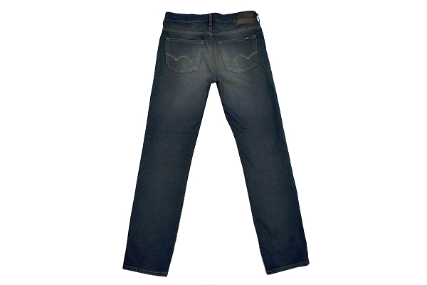 ヴィンテージウォッシュ加工 濃紺デニム ストレッチ素材 ジーンズ ドーナツボタン チェーンステッチ