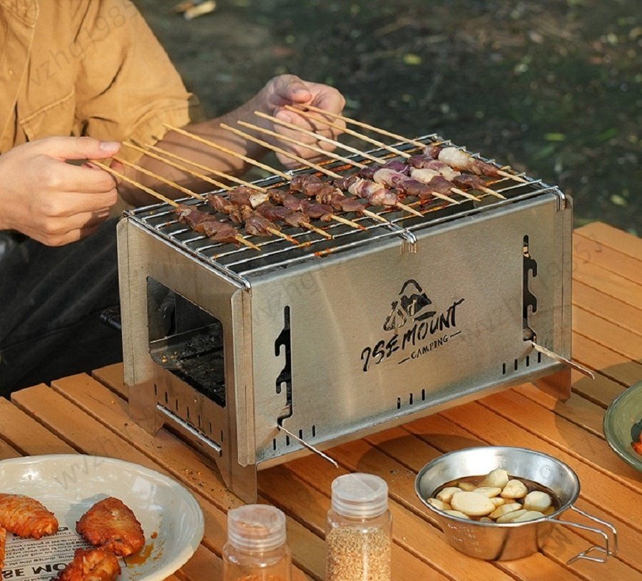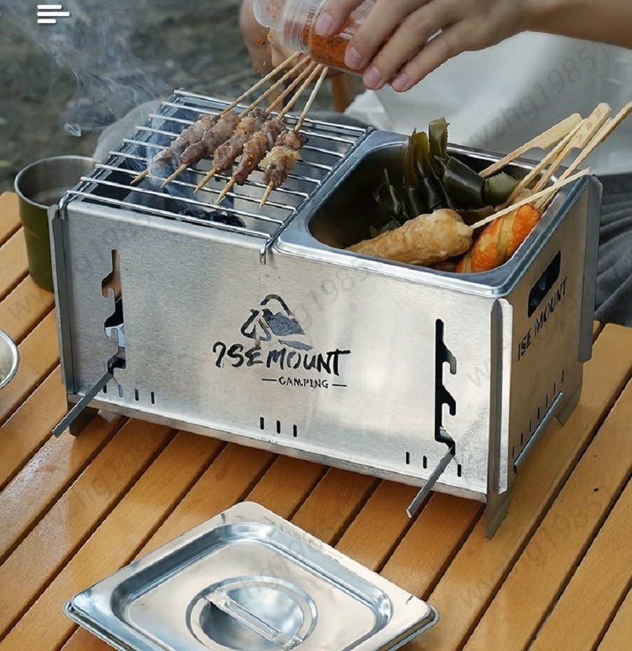 超高品質バーベキューコンロ おでん鍋 卓上BBQ組立式ステンレス製炭グリルポータブル キャップ アウトドア 3kg 収納付き 19.5×32.5×18.4m